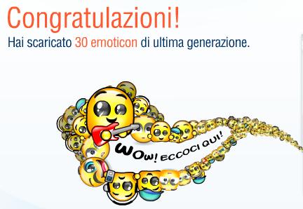 Ieri sera mi è arrivata una newsletter dal sito messenger.it che mi avvisava che sul sito sono state inserite 30 nuove emoticon disponibili per il download gratuito. Sono andato a questa pagina e ho cliccato su 30 emoticon gratis. Se lo fate anche voi scaricherete un file .exe molto facile da installare. Lo avviate e deselezionate le due caselle che dicono rendi msn la tua home page o ricevi newsletter, ora cliccate avanti. Ad installazione finita cliccate su fine e vi manda ad una pagina di conferma dell’avvenuto download. Dovrebbe esserci un’immagine come questa: