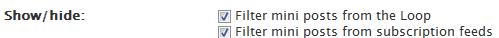 Ora potete scrivere quanti post volete e allo stesso tempo evitare di disturbare i lettori abituali. Quando scrivete i post che volete oscurare, nell’ultimo campo di wordpress selezionate la casella “This is a MiniPost” Cosi il vostro blog aumenta le visite e i lettori continuano a seguirvi 🙂
