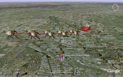 No non preoccupatevi, non siamo impazziti! Quest’anno sarà possibile rintracciare Babbo Natale tramite Google Maps e di poterlo seguire nel suo giro del mondo nella consegna dei regali a tutti i bimbi buoni! Tutto questo è possibile ttraverso la partnership tra Google e la North American Aerospace Defense Command (NORAD), che sentendosi in spirito natalizio ha deciso di fornire attraverso il motore di ricerca più famoso del mondo questa divertente applicazione attraverso alcuni strumenti di Google come Maps, Google Earth, iGoogle and YouTube.