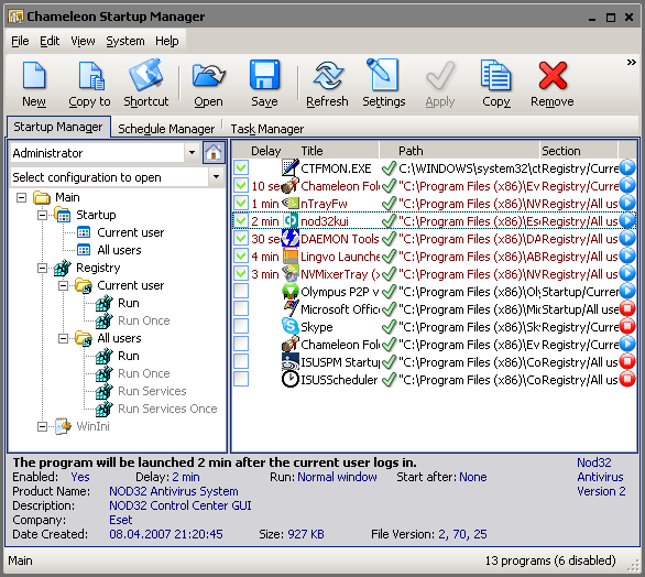 Startup Manager, vi aiuterà in questa operazione. Il programma presenta un’interfaccia grafica semplicissima, aiuterà a gestire e disattivare tutti quei software che si avviano insieme a Windows, e che allungano i tempi di avvio. I programmi il cui avvio verrà disabilitato continueranno a funzionare solo dovrete avviarli e non lo faranno automaticamente.