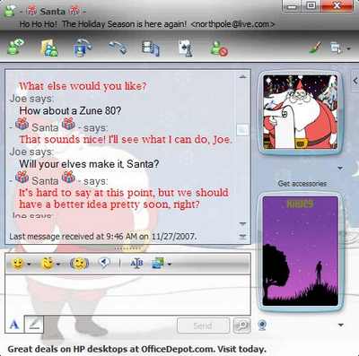 Ma la chicca più bella l’abbiamo lasciata per ultima: inserendo, infatti, Northpole@live.com potrete chattare su Msn Messenger con Babbo Natale e averlo nei vostri contatti!