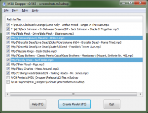 La creazione di playlist è una cosa nota a tutti. Molte volte abbiamo trattato questi temi e credo che siano di interesse generale, visto che la musica piace a qualsiasi persona. Attraverso l’utilizzo di M3U Dropper potremo decidere quali canzoni aggiungere alla nostra playlist, selezionandole dall’interfaccia del programma.