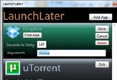 L’utilizzo di Launch later è molto semplice, dopo aver avviato il programma, aggiungente al pannello i programmi che desiderate ritardare e cliccate su Add App. Impostate il ritardo di avvio che volete e alla fine confermate tutto con Save. In un secondo momento, potrete sempre modificare le impostazioni in base alle esigenze attuali.