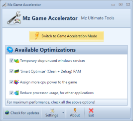 My Game Accellerator , è un ottimo prodotto della Mz Ultimate Tools (casa costruttrice di molti programmi per migliorare le performance del pc) , che interviene su dei servizi considerati inutili durante l’esecuzione di un gioco, offrendo una nuova esperienza al videogiocatore. Migliorate le prestazioni grafica del vostro pc e vedrete che giocare sarà un vero piacere.