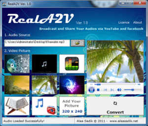 Avete sempre desiderato poter condividere file audio trasformati in video da poter caricare sulle piattaforme di video sharing come Youtube o Vimeo? Da oggi tutto questo è possibile, perché ad aiutarci c’è RealA2V un intelligente software freeware per OS Windows che consente in pochi passi di poter convertire i file audio che abbiamo in semplici e veloci video.