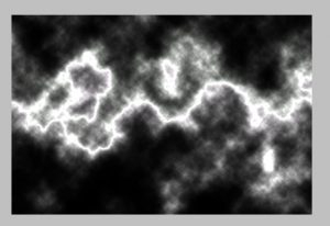 Andiamo a selezionare un filtro adesso, accendendo al menù filtro, premiamo su Rendering e clicchiamo su Nuvole in differenza ( Filtro->Rendering -> nuvole in differenza). Successivamente apparirà un effetto di nuvole grigie. Fatto questo andiamo in Regolazioni immagini ( Immagine -> Regolazioni -> Inverti o potete premere CTRL+I) così da avere come colore dominante il bianco. Potrete notare che ora si vede la sagoma simile a quella di un fulmine.