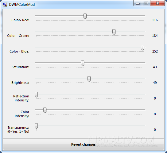 Ovviamente si tratta di uno strumento da utilizzare esclusivamente con Windows Seven, personalizzare Aero in tutto e per tutto con quest’ applicazione sarà un gioco da ragazzi. Per esempio potrete personalizzare la presenza di maggiore tonalità rosse nell’interfaccia, verde e blu.