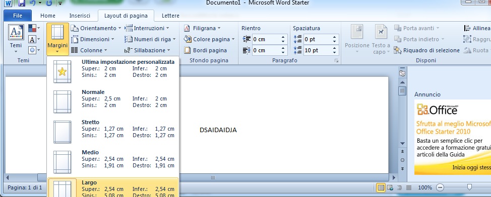 Per prima cosa se utilizzate Office 2007 o 2010, dovete aprire word e cliccare sulla scheda layout di pagina ed aprire ‘Margini’. Ora potete selezionare uno dei margini presenti già di base, oppure creare un’impostazione personalizzata. Come? Basta cliccare su ‘Margini personalizzati’.