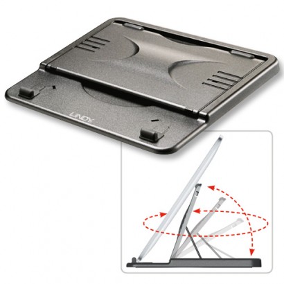 il supporto girevole di Lindy è compatibile sia con iPad sia con altri tablet, ha due gommini anteriori per l’appoggio e un piatto girevole, orientabile per un utilizzo ovunque. Il supporto assicura diversi tipi di angolazione che sono selezionabili tramite un apposito sistema che ruota fino a 360 gradi. Il suppoto ha uno spessore di 1,2 cm e può essere trasportato facilmente e con comodità ovunque vogliamo. E’ molto comodo, compatto e leggero e costa solamente 22 euro iva inclusa.